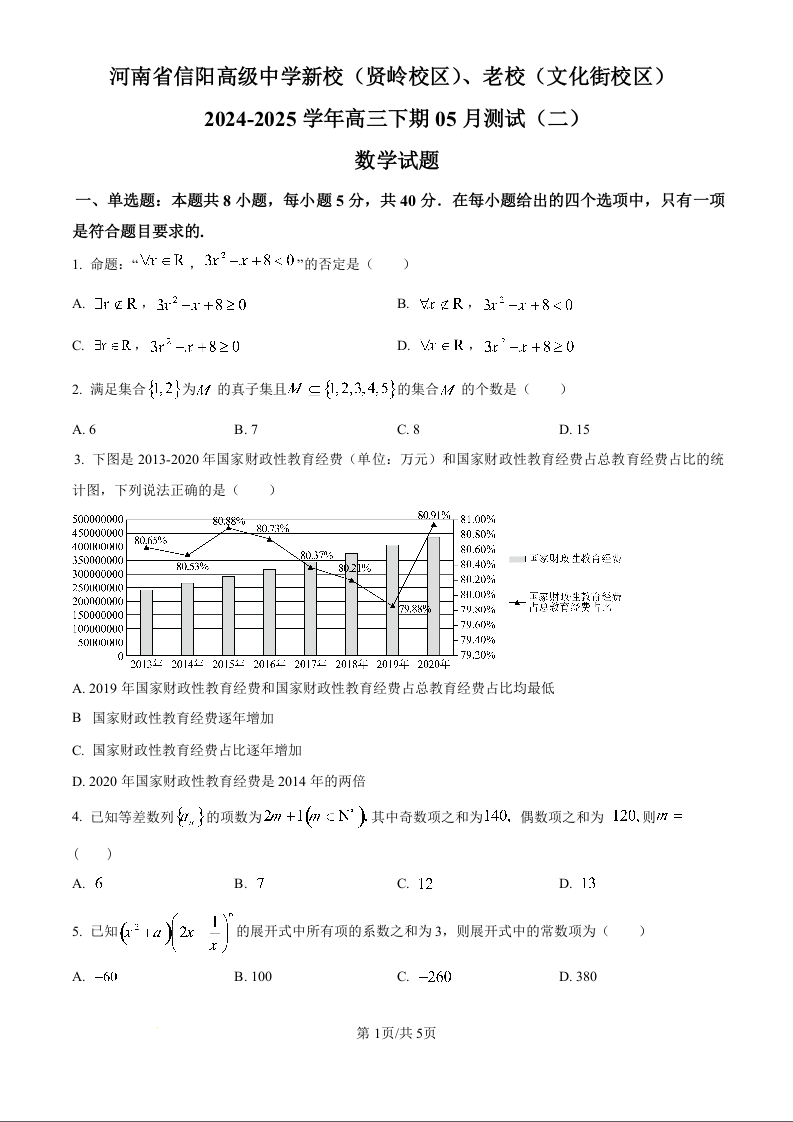 河南省信阳高级中学2025届高三下学期5月测试(二)数学.docx