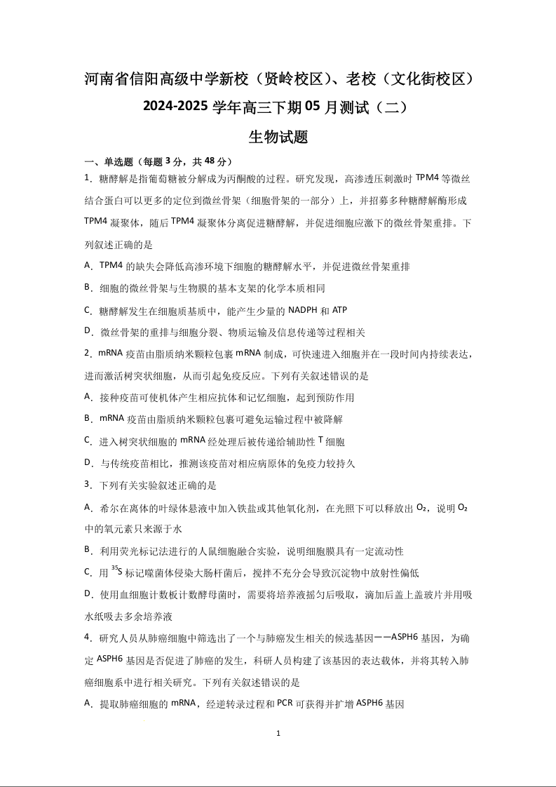 河南省信阳高级中学2025届高三下学期5月测试(二)生物.docx