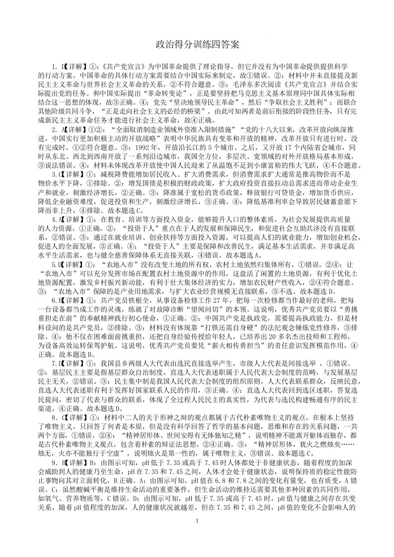黑龙江省大庆实验中学二部2025届高三得分训练(四)政治答案.docx