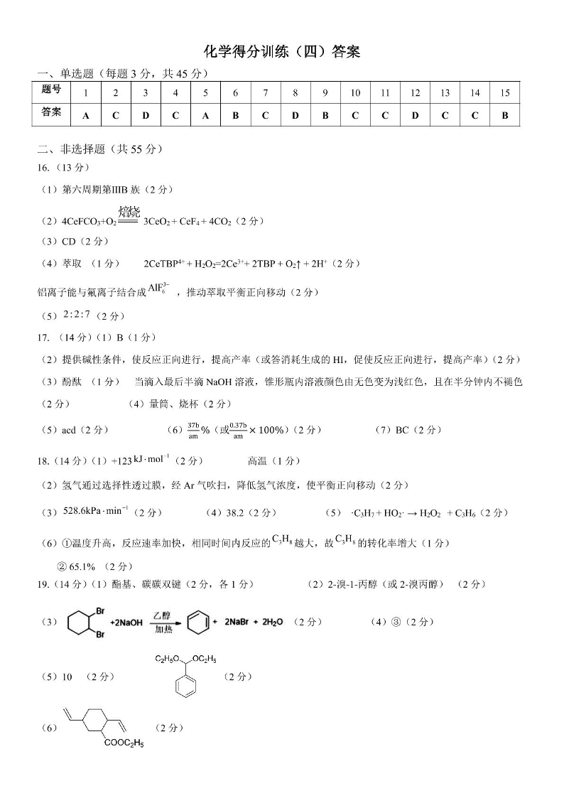 黑龙江省大庆实验中学二部2025届高三得分训练(四)化学答案.pdf