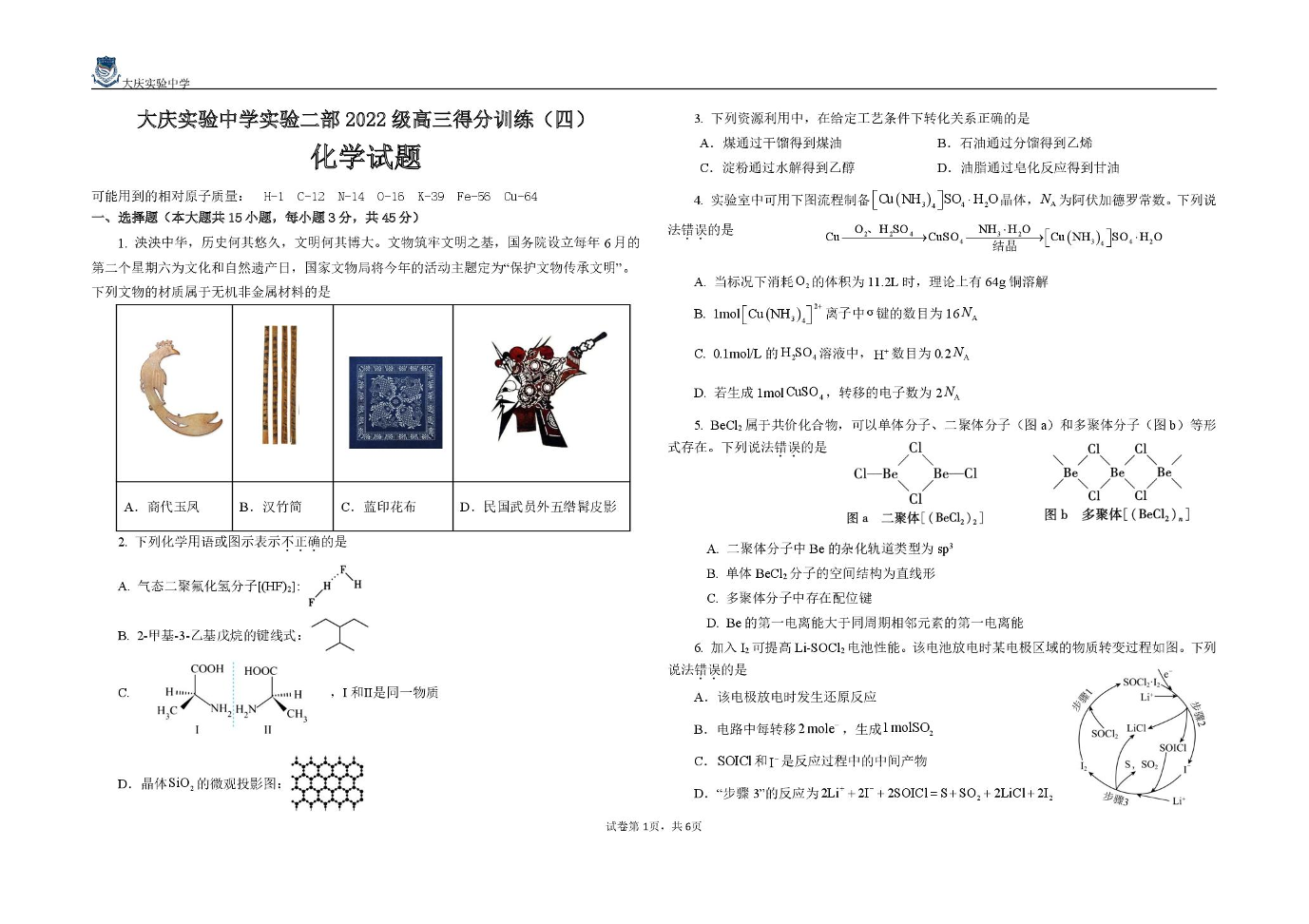 黑龙江省大庆实验中学二部2025届高三得分训练(四)化学.pdf