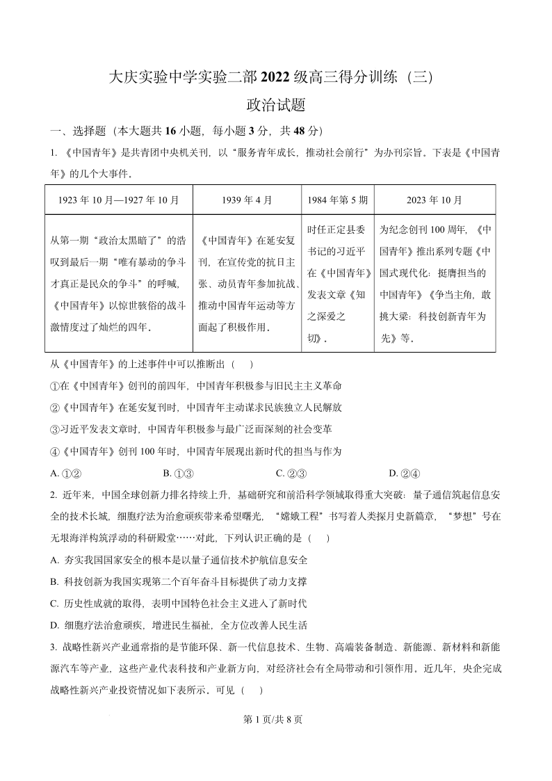 黑龙江省大庆实验中学二部2025届高三得分训练(三)政治.pdf