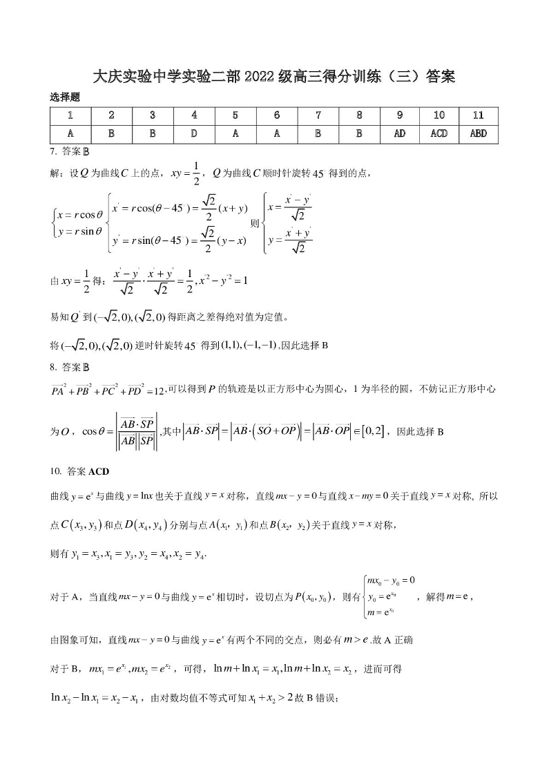 黑龙江省大庆实验中学二部2025届高三得分训练(三)数学答案.pdf