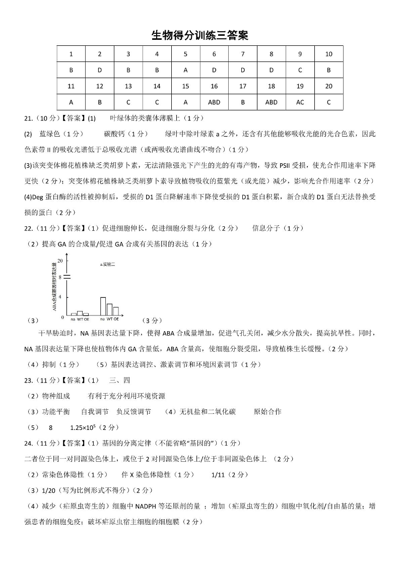 黑龙江省大庆实验中学二部2025届高三得分训练(三)生物答案.pdf