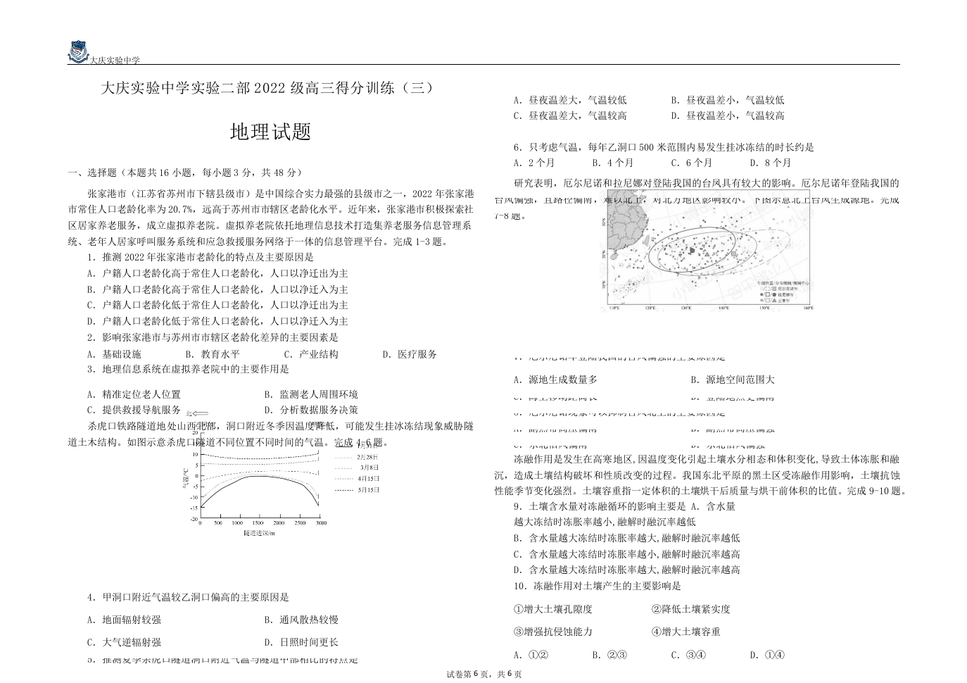 黑龙江省大庆实验中学二部2025届高三得分训练(三)地理.docx