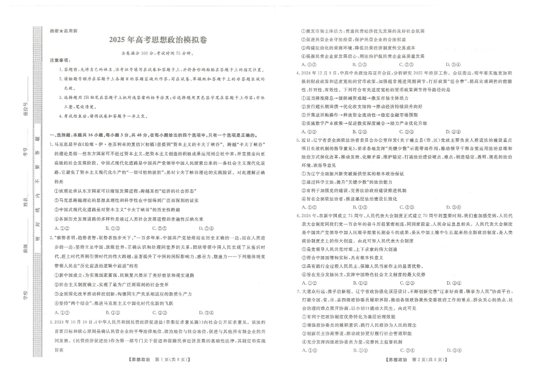 辽宁省名校联盟2025届高考临考押题密卷 政治(含答案).pdf