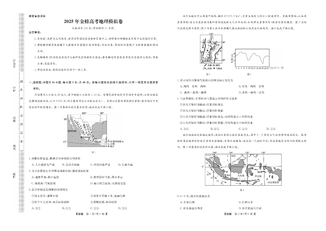 辽宁省名校联盟2025届高考临考押题密卷 地理(含答案).pdf