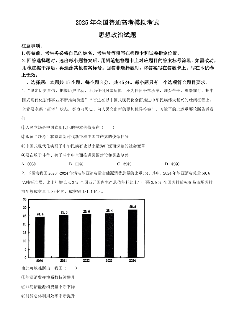 山东潍坊市2025年全国普通高考模拟考试 政治试题(含答案).docx