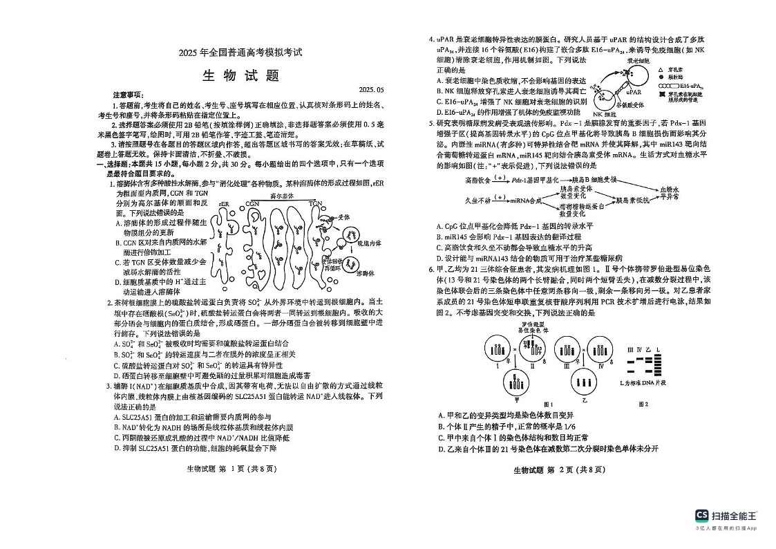 山东潍坊市2025年全国普通高考模拟考试 生物试题(含答案).pdf