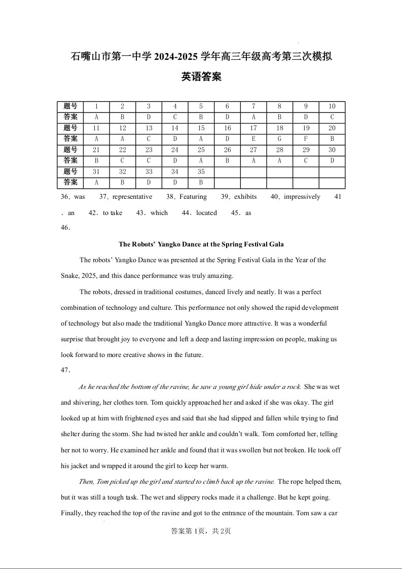 宁夏石嘴山市第一中学高三年级高考第三次模拟考试 英语答案.docx