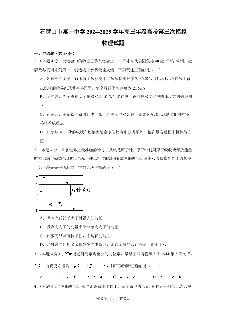 宁夏石嘴山市第一中学高三年级高考第三次模拟考试 物理.docx