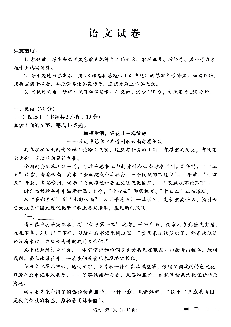 云南师大附中2025届高考适应性月考卷(九)语文试题(含答案).pdf