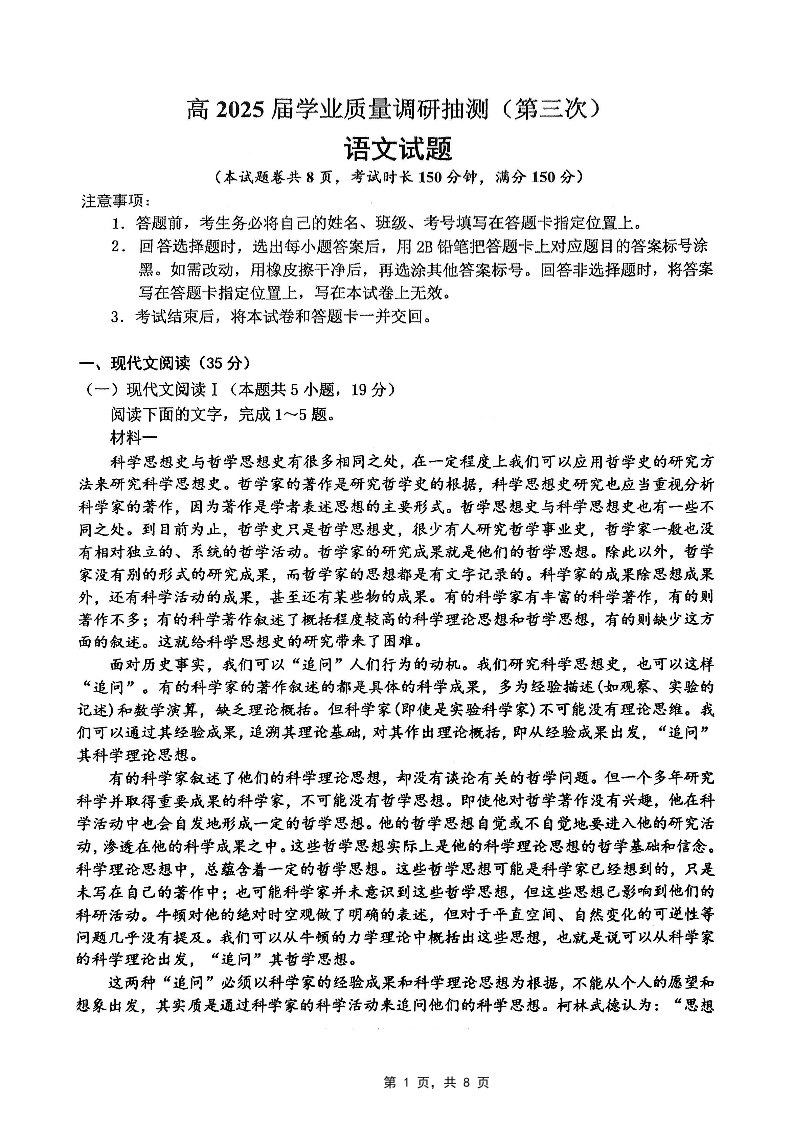 重庆市高2025届学业质量调研抽测(第三次)语文.pdf
