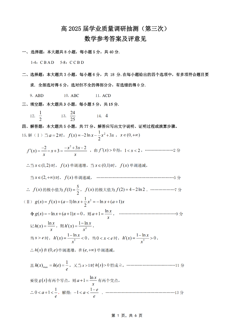 重庆市高2025届学业质量调研抽测(第三次)数学答案.pdf