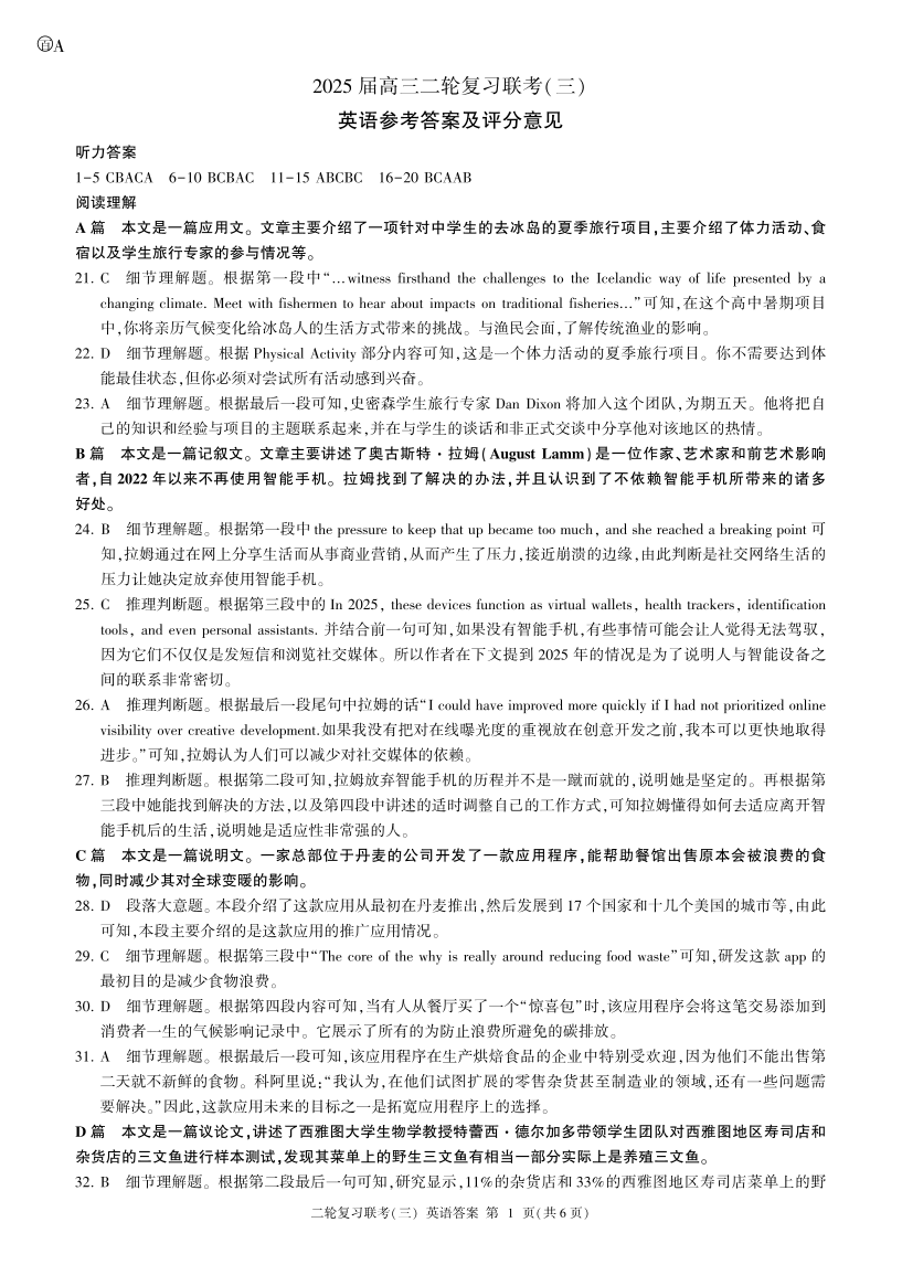 安徽省九师联盟2025高三二轮复习联考(三)英语答案.pdf
