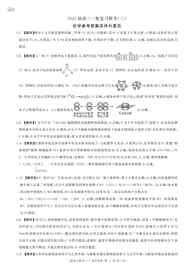 安徽省九师联盟2025高三二轮复习联考(三)化学答案.pdf