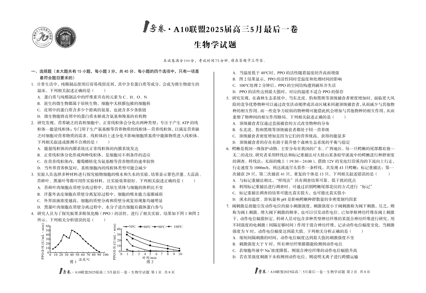 1号卷·A10联盟2025届高三5月最后一卷生物.pdf