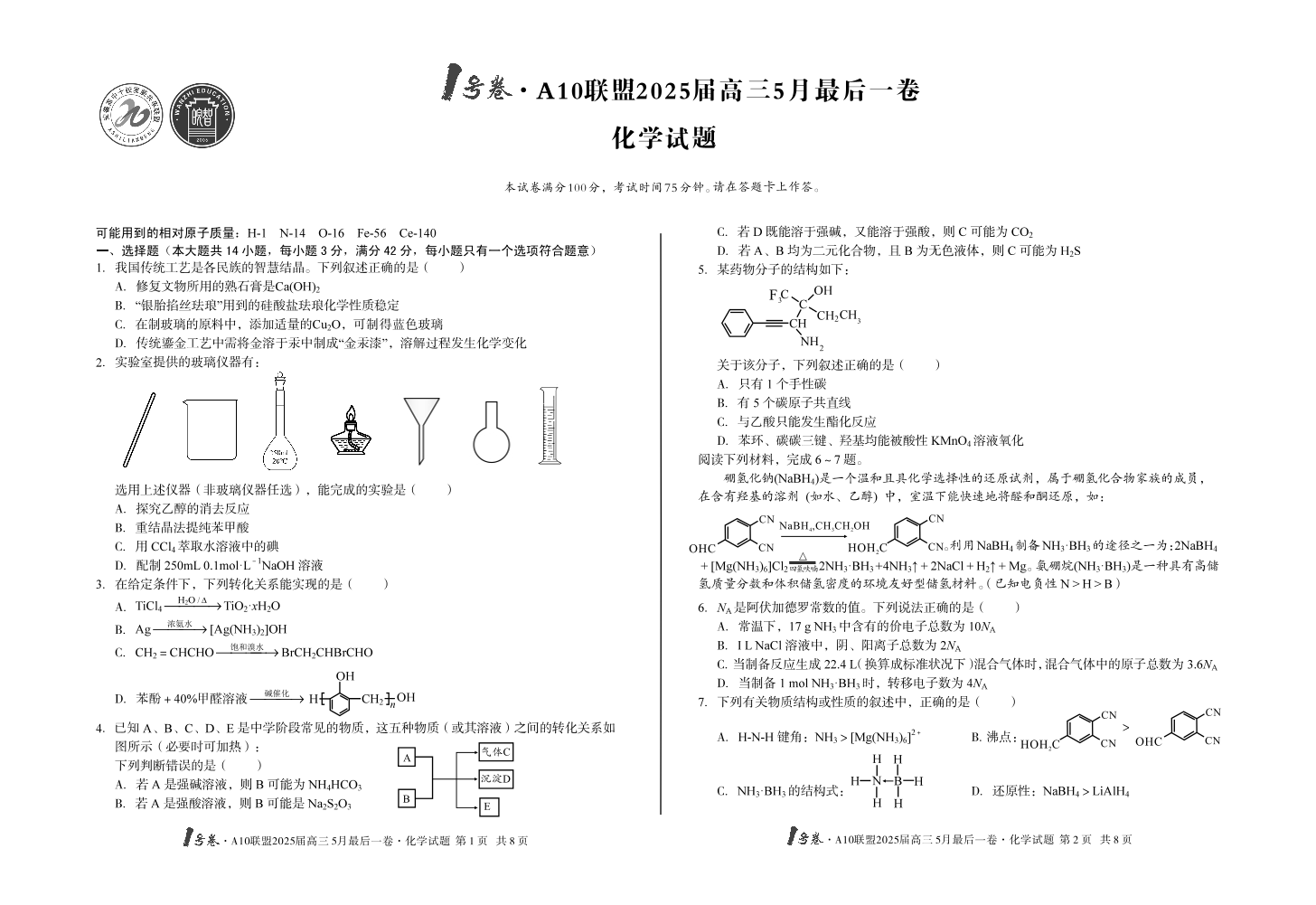 1号卷·A10联盟2025届高三5月最后一卷化学.pdf