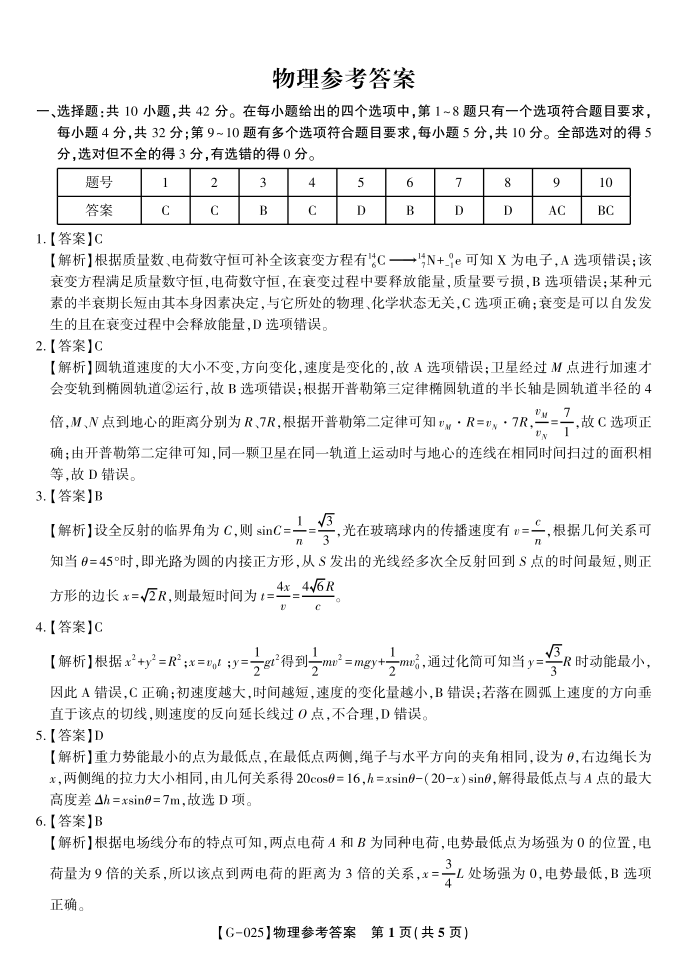 物理答案·2025年5月高三最后一卷.pdf