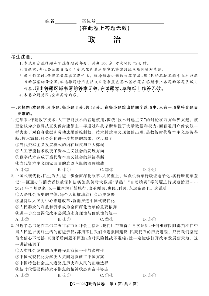 政治试题·2025年5月高三最后一卷.pdf