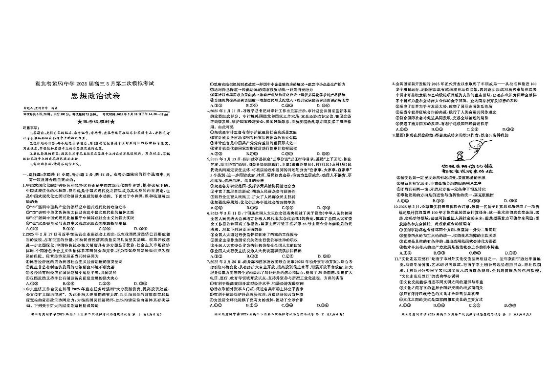 湖北省黄冈中学2025届高三5月第二次模模拟考试 政治.pdf
