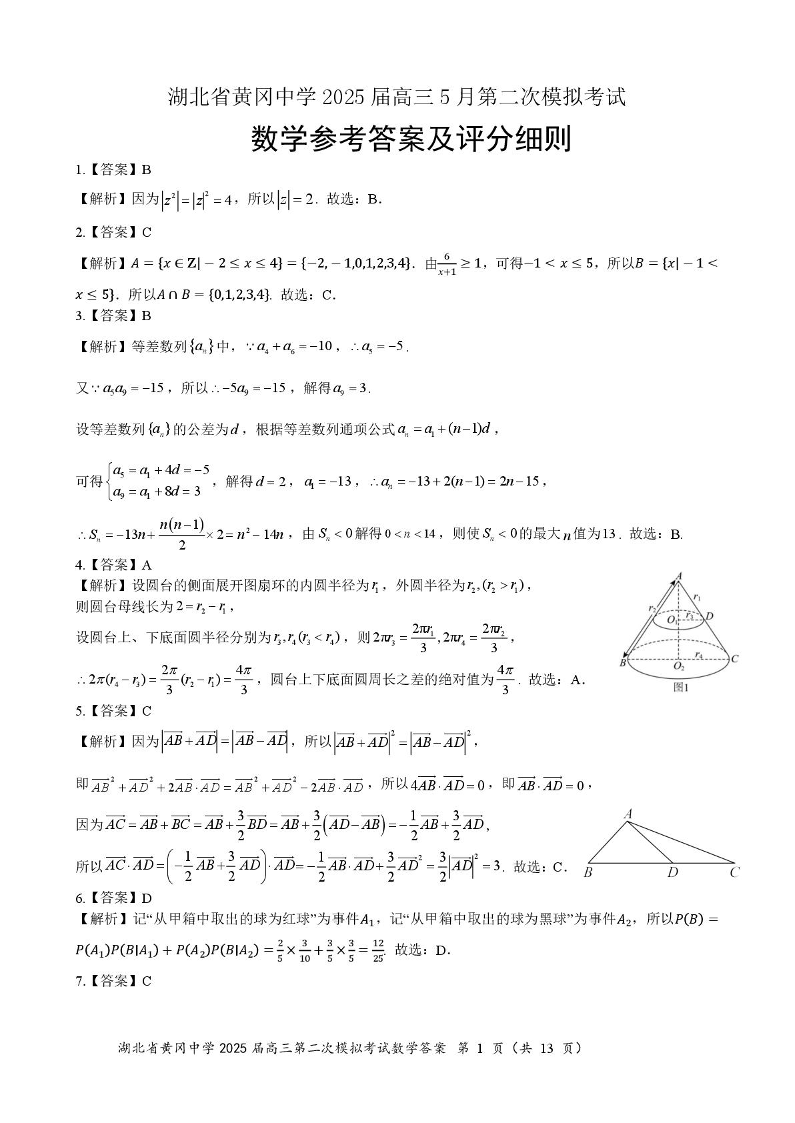 湖北省黄冈中学2025届高三5月第二次模模拟考试 数学答案.pdf