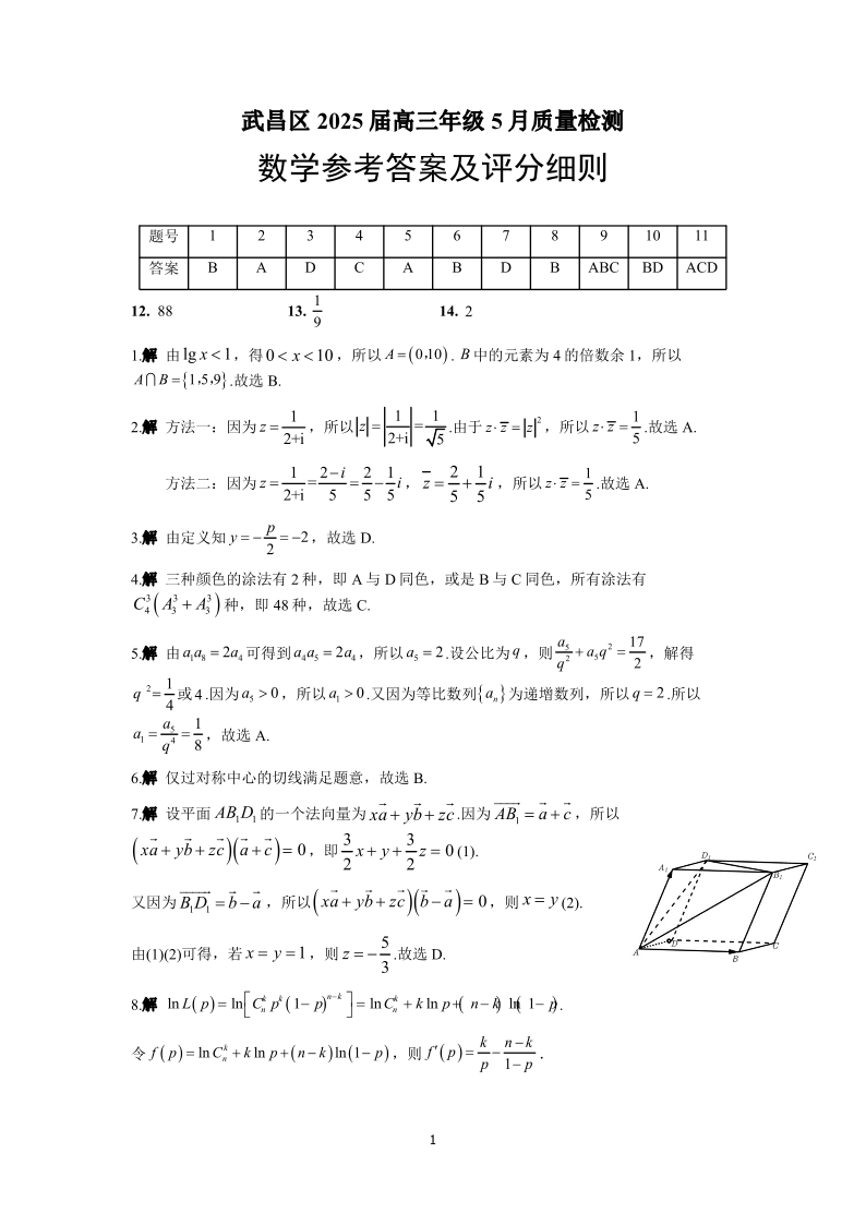 湖北省武昌区2025届高三年级5月质量检测 数学答案.pdf