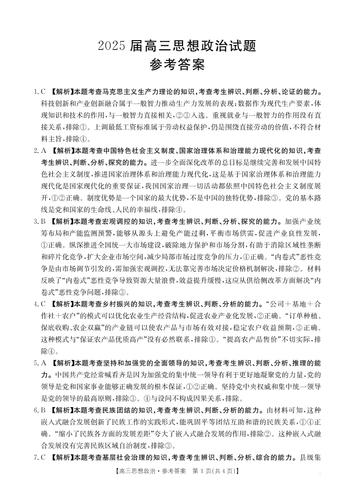 四川省部分学校2025届高三5月联考 政治答案.pdf