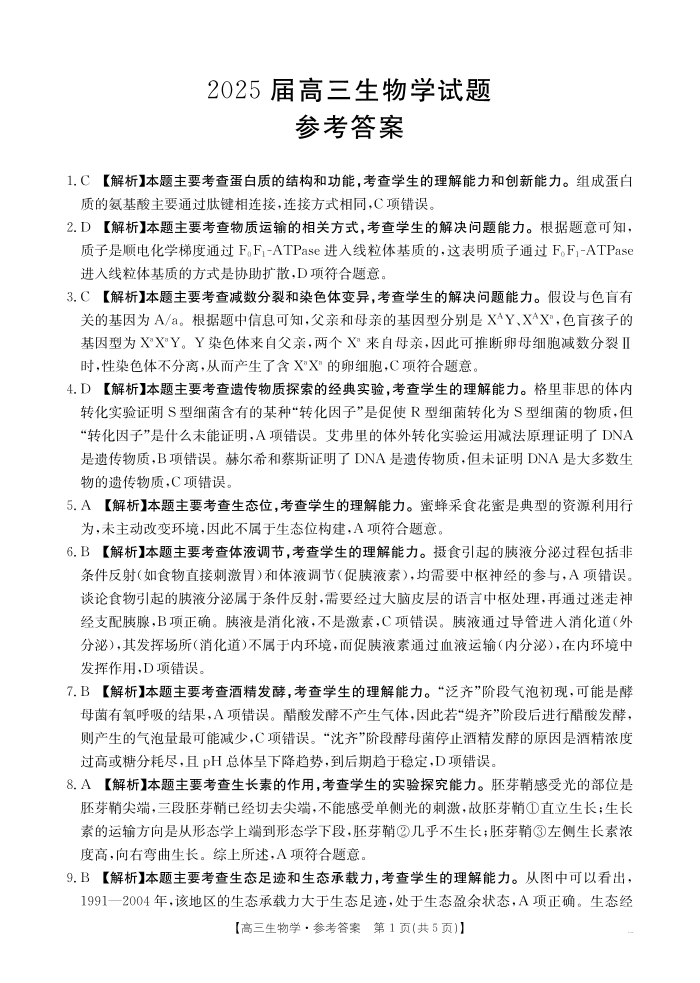 四川省部分学校2025届高三5月联考 生物答案.pdf