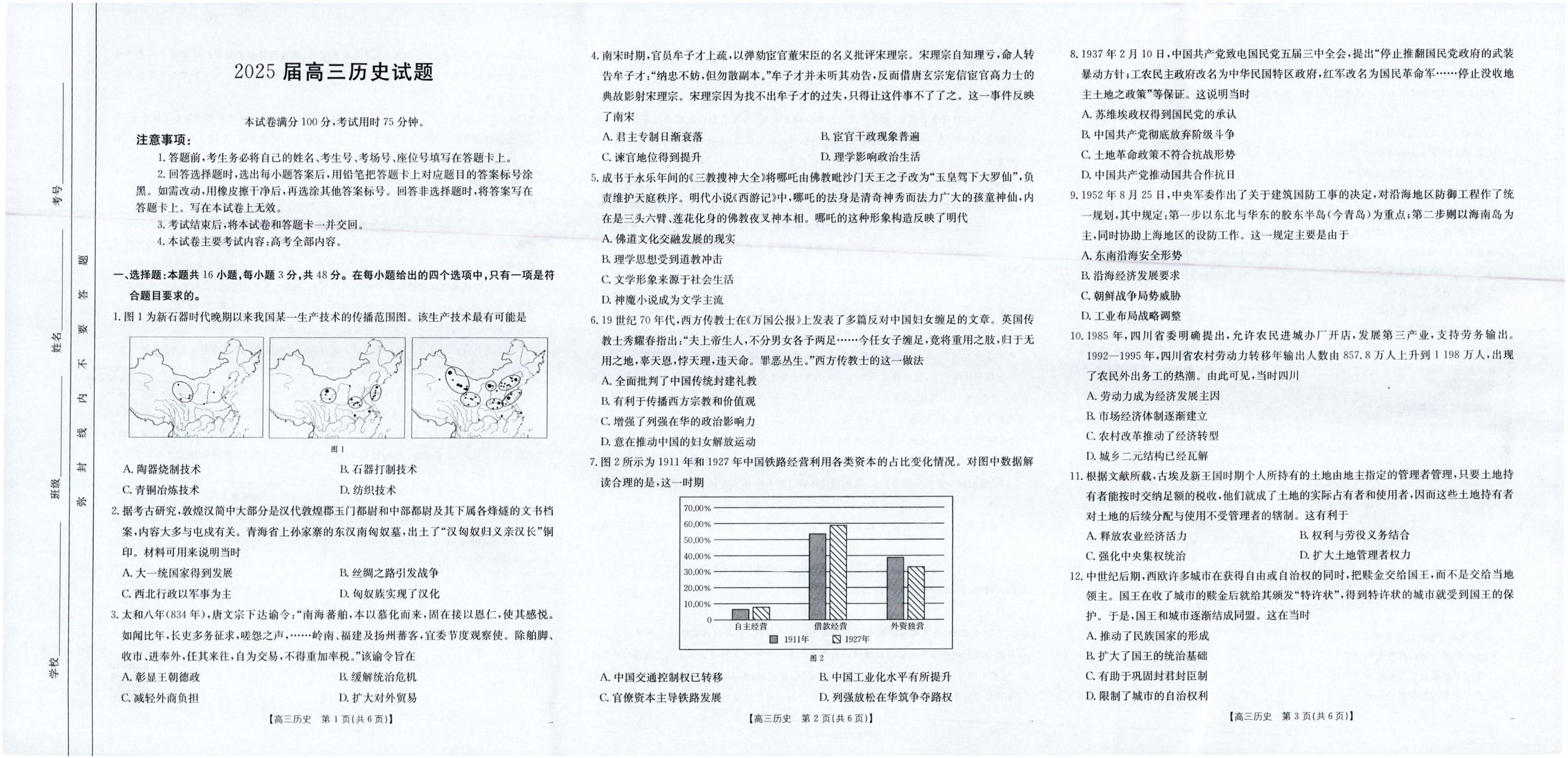 四川省部分学校2025届高三5月联考 历史.pdf