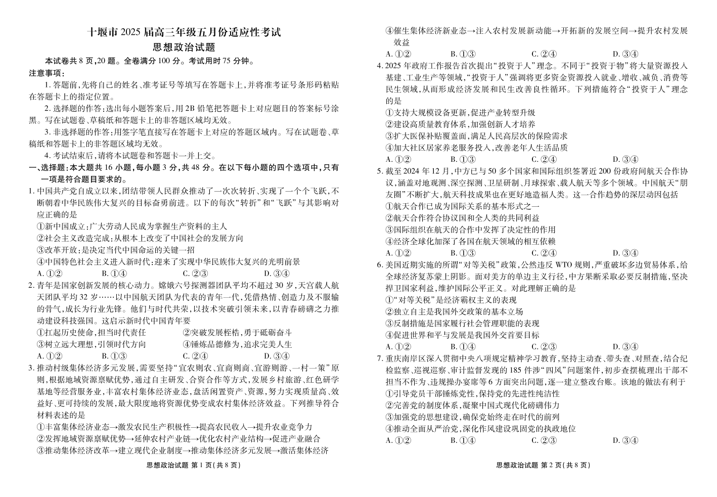 湖北省十堰市2025届高三年级五月份适应性考试 政治试题(含答案).pdf