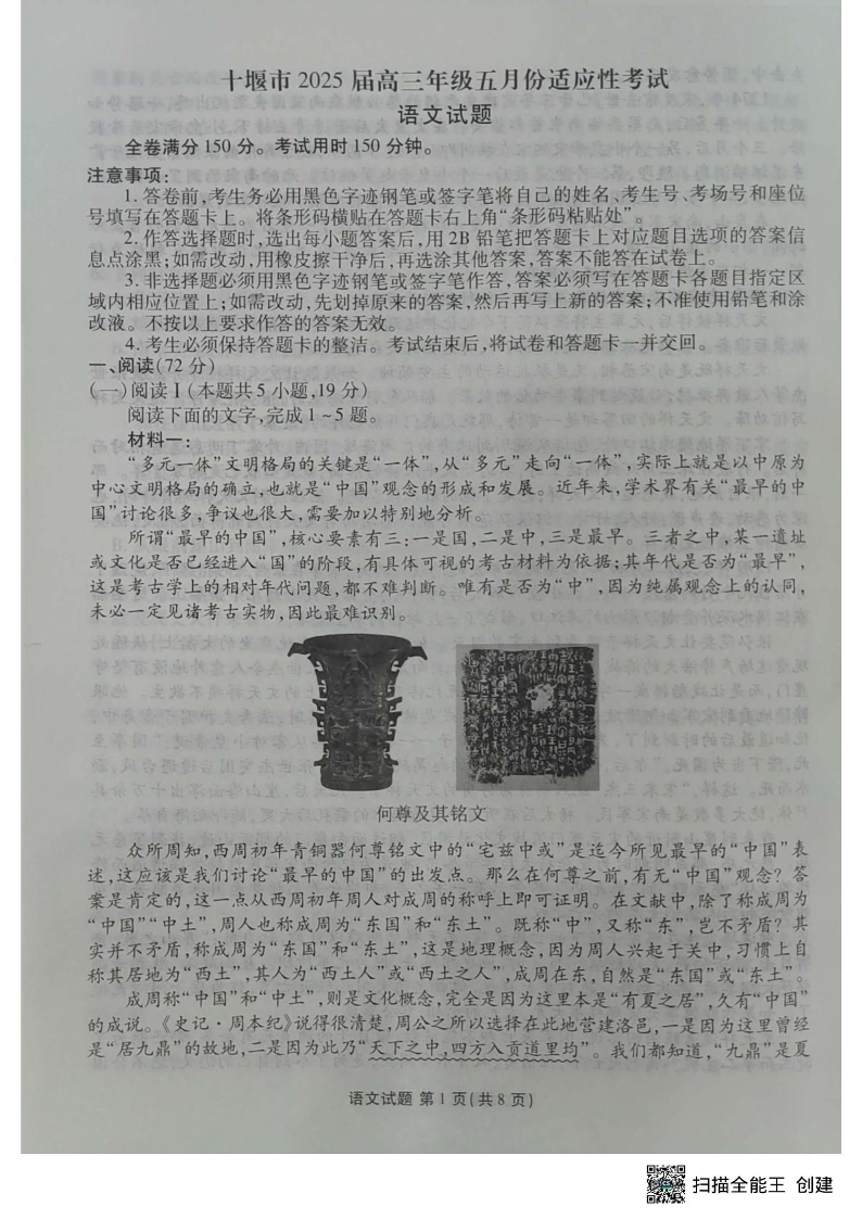 湖北省十堰市2025届高三年级五月份适应性考试 语文试题(含答案).pdf