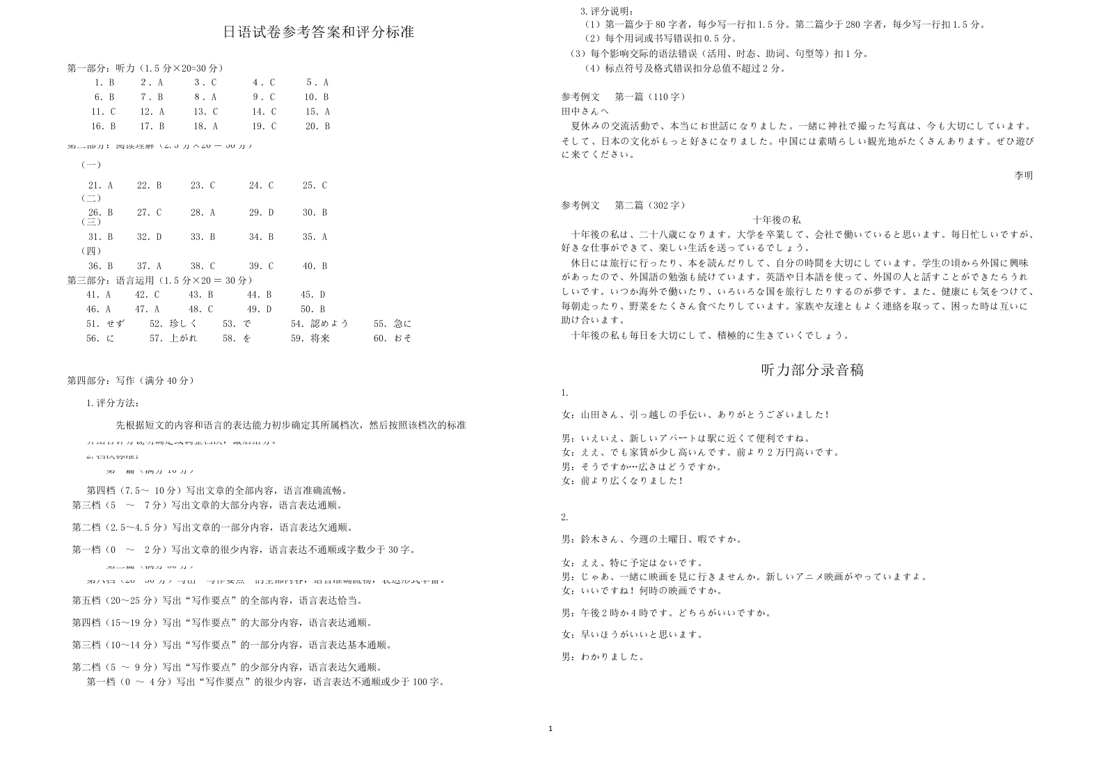 湖北省十堰市2025届高三年级五月份适应性考试 日语答案.docx