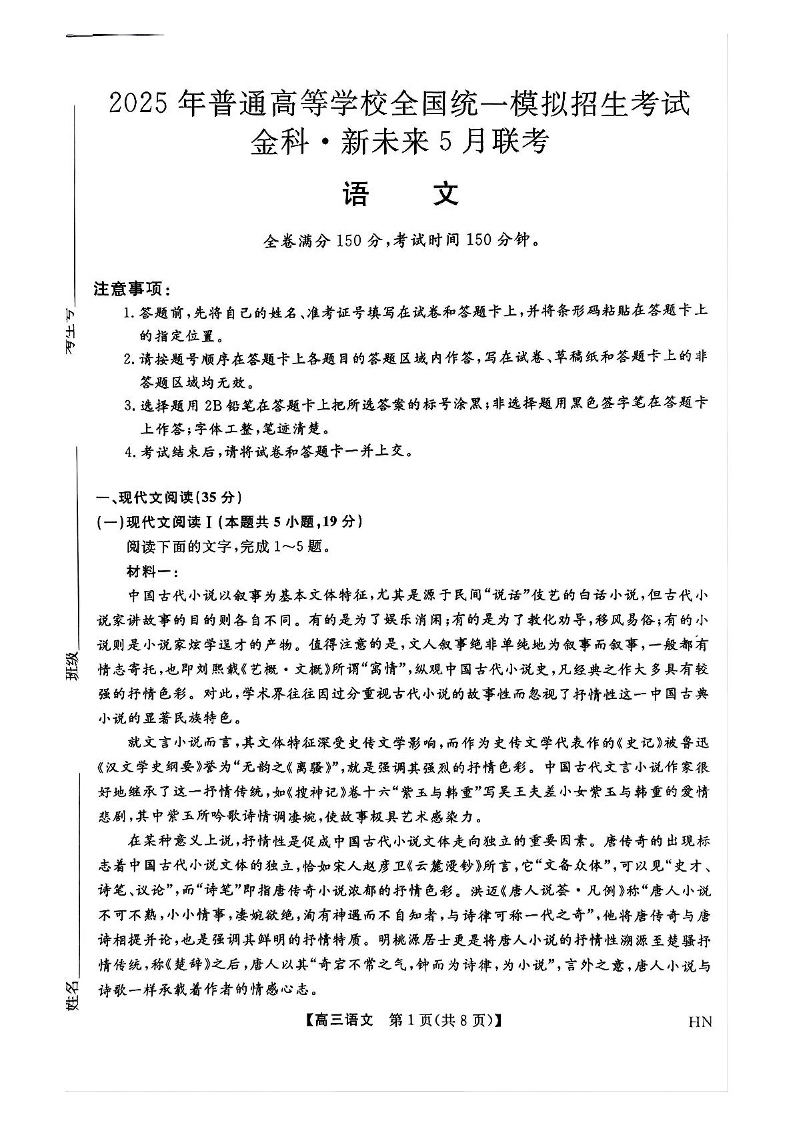 河南省金科新未来2025届高三下学期5月联考 语文.pdf