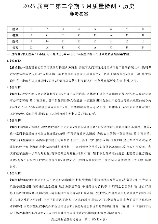 河南省金科新未来2025届高三下学期5月联考 历史答案.pdf