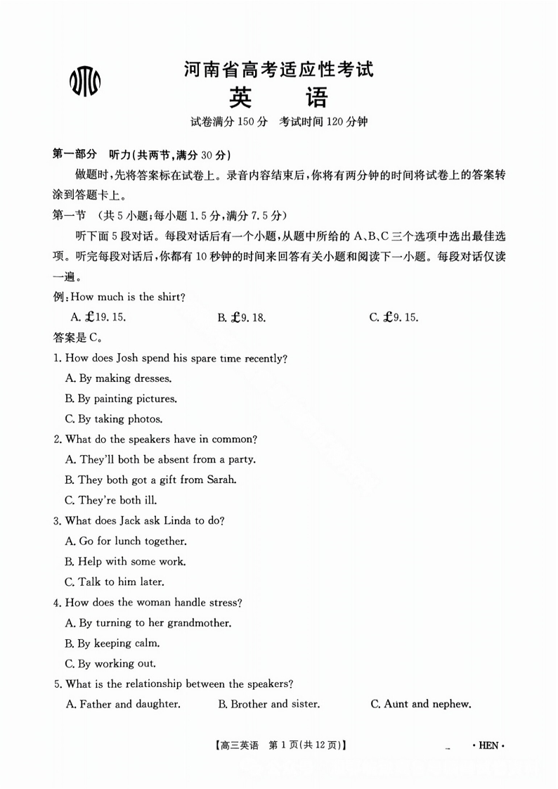 河南省2025年5月高考适应性考试 英语(含答案).pdf