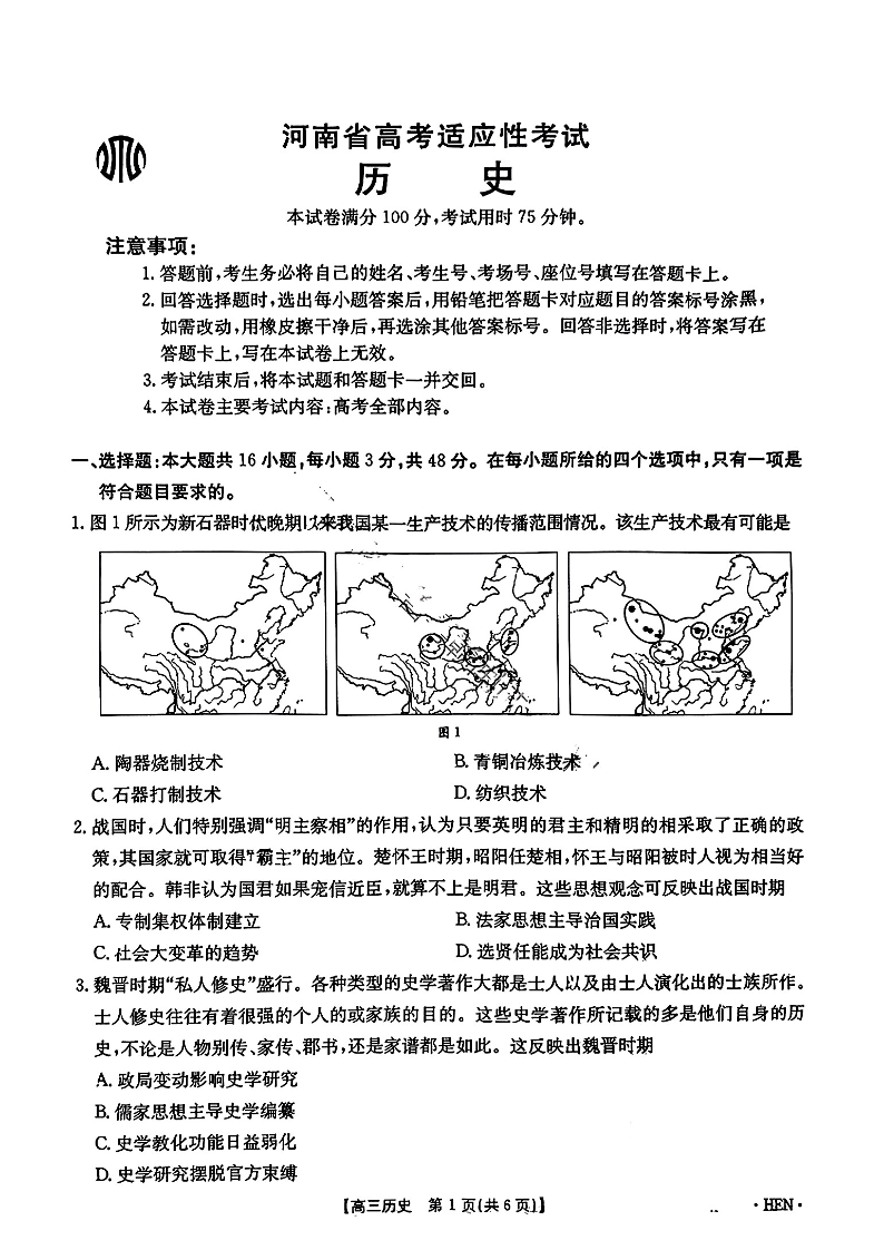 河南省2025年5月高考适应性考试 历史(含答案).pdf