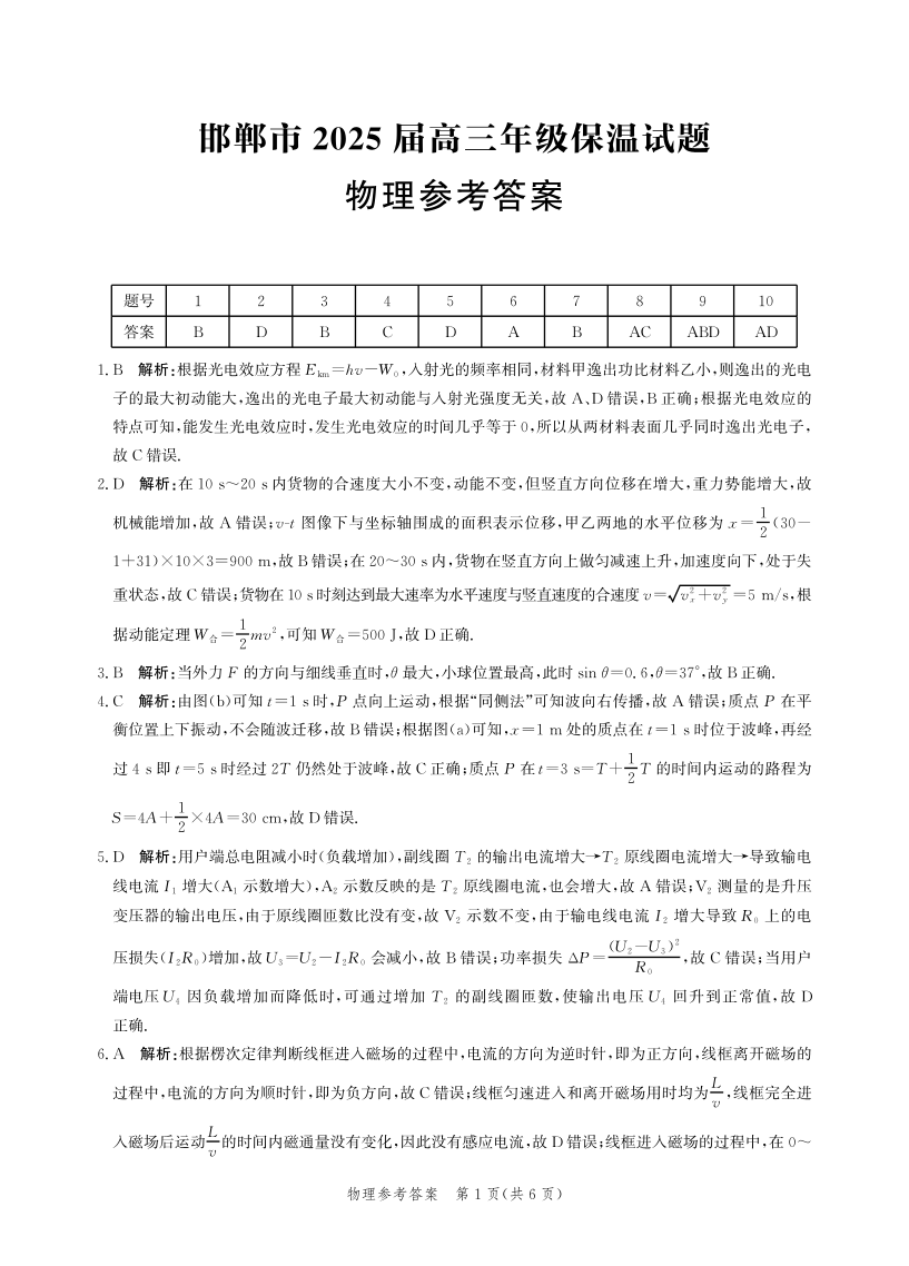 邯郸市2025届高三年级保温试题 物理答案.pdf