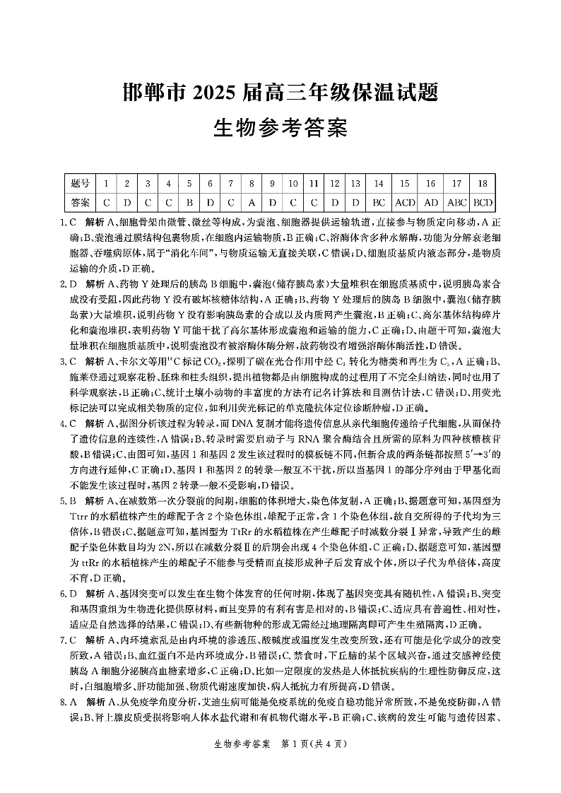 邯郸市2025届高三年级保温试题 生物答案.pdf