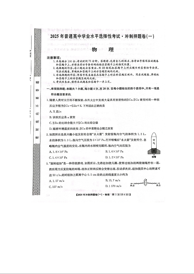 陕西省2025年高三下学期第三次模拟考试 物理.docx