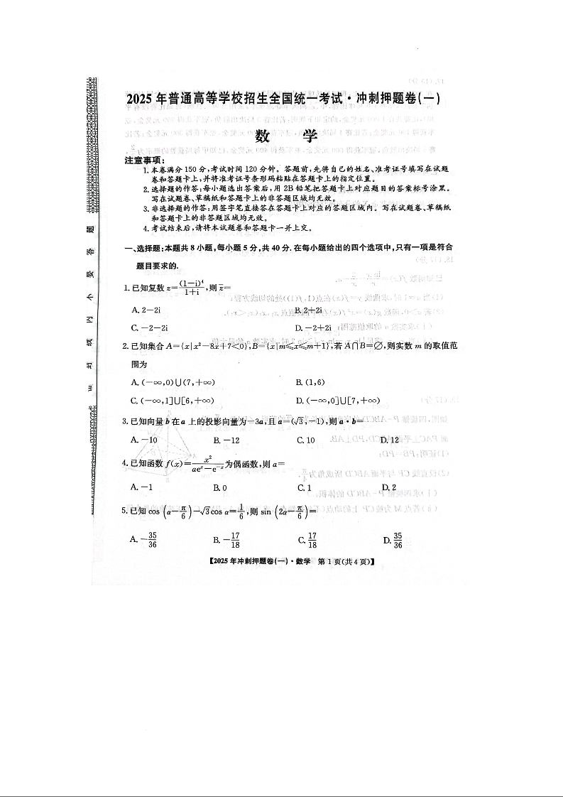 陕西省2025年高三下学期第三次模拟考试 数学(含答案).docx