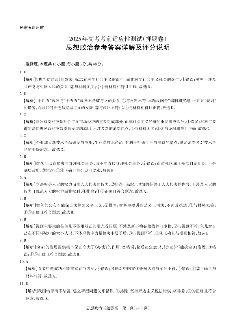 山西省2025年5月高考考前适应性测试 政治答案.pdf