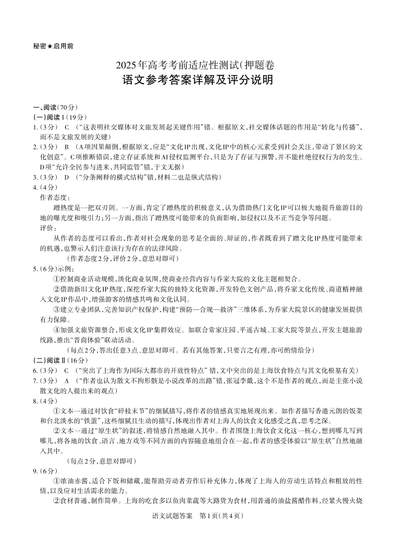 山西省2025年5月高考考前适应性测试 语文答案.pdf