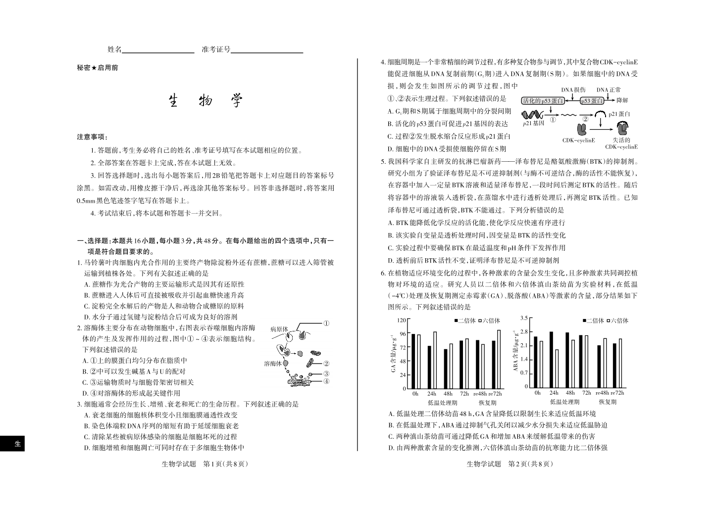 山西省2025年5月高考考前适应性测试 生物.pdf