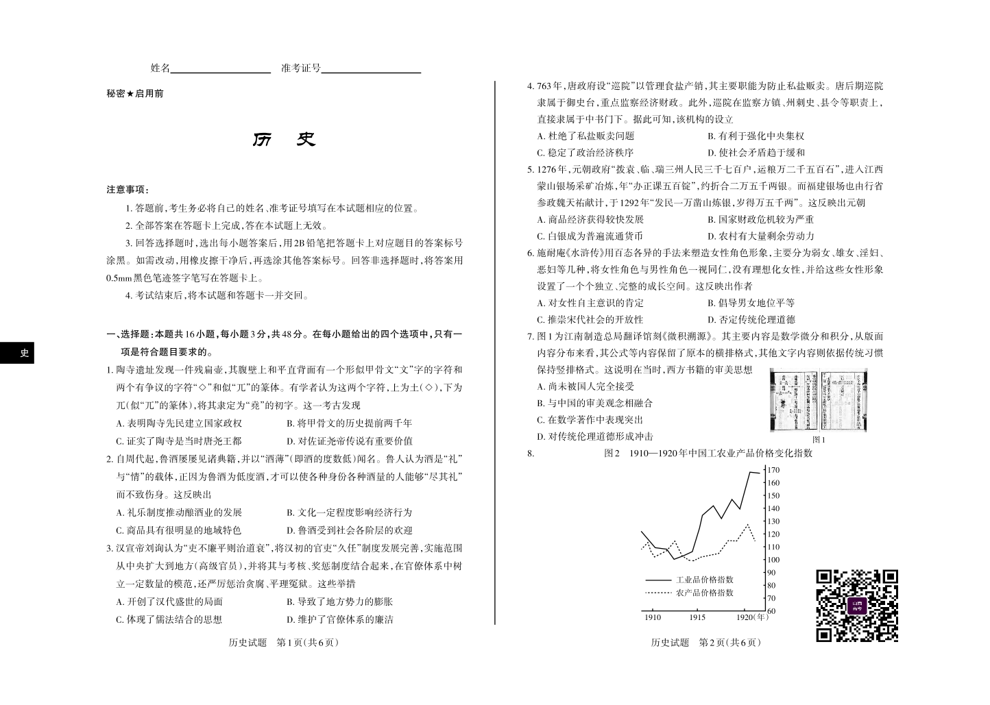 山西省2025年5月高考考前适应性测试 历史.pdf