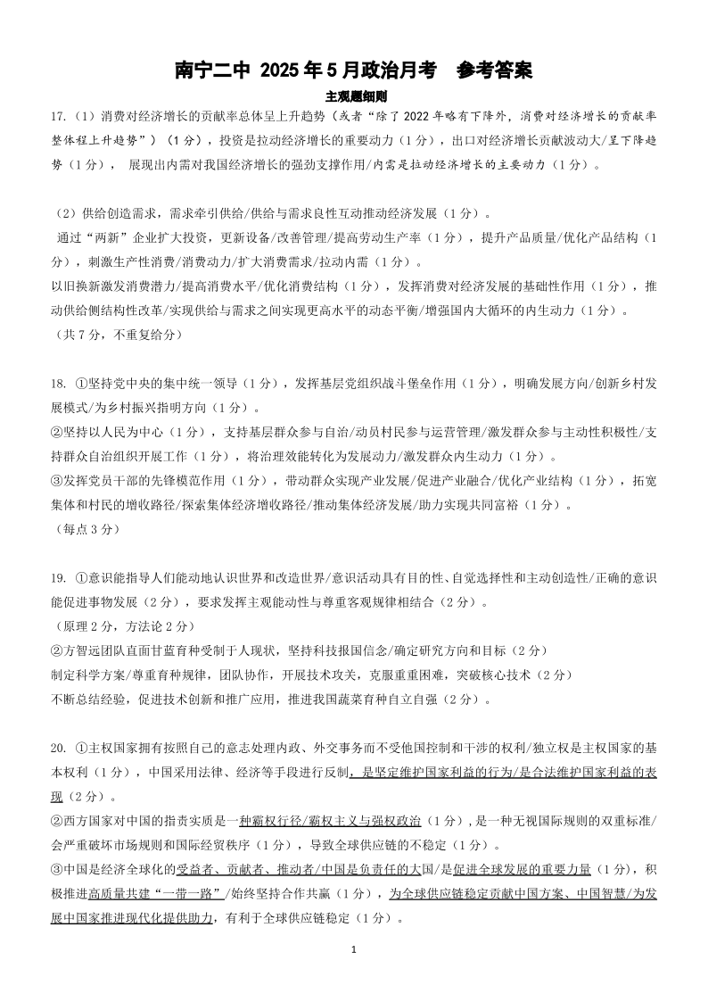 南宁二中2025年5月高三冲刺考 政治评分细则.pdf