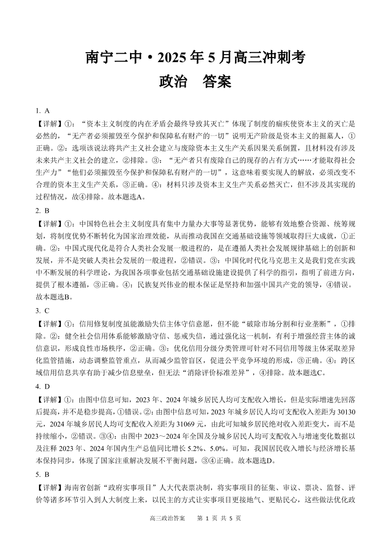 南宁二中2025年5月高三冲刺考 政治答案.pdf