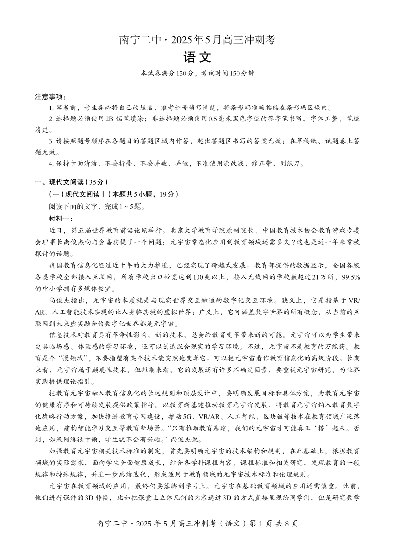 南宁二中2025年5月高三冲刺考 语文.pdf