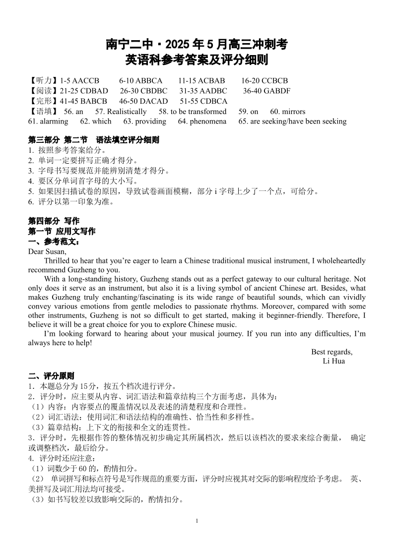 南宁二中2025年5月高三冲刺考 英语答案.pdf