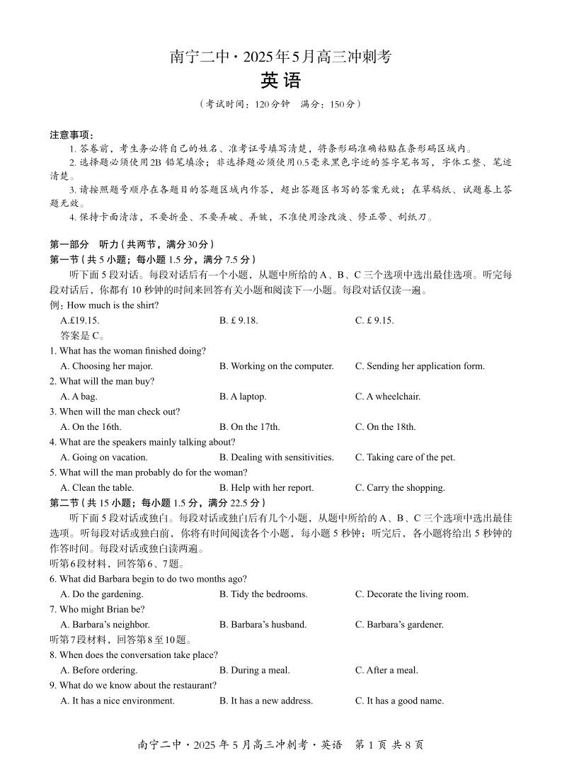 南宁二中2025年5月高三冲刺考 英语.pdf